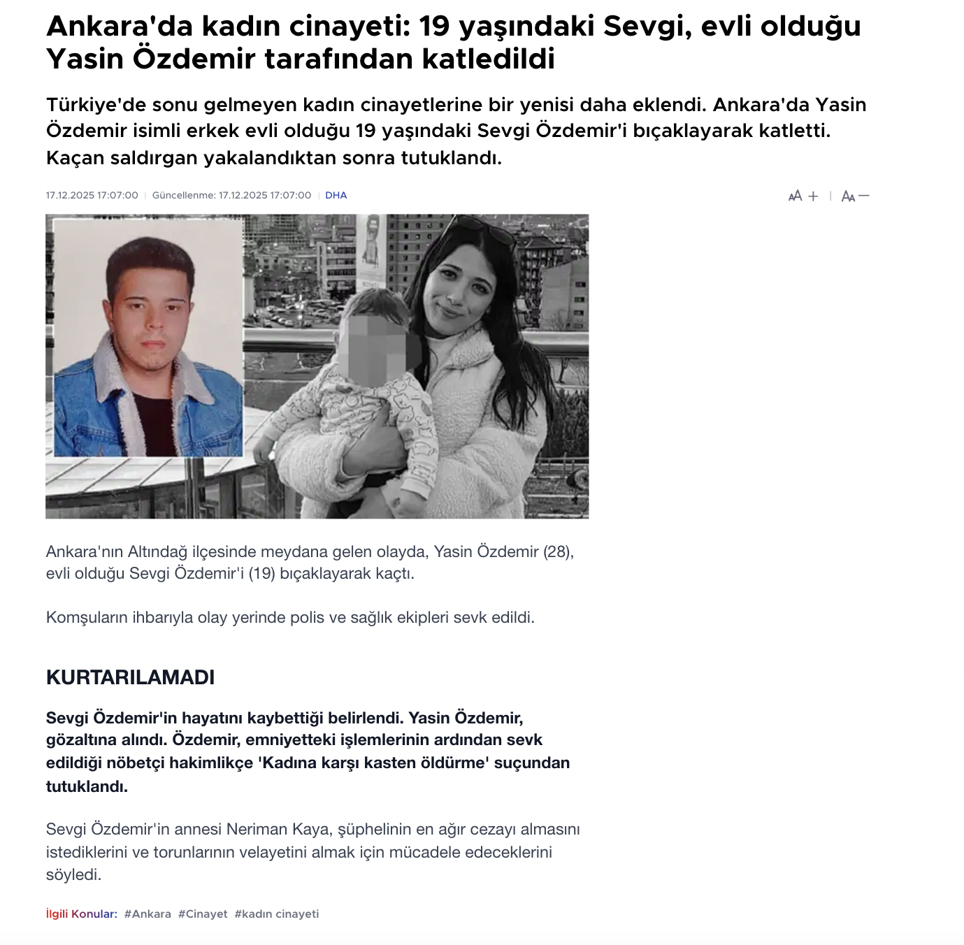 Kaynak: https://www.cumhuriyet.com.tr/turkiye/ankara-da-kadin-cinayeti-19-yasindaki-sevgi-evli-oldugu-yasin-ozdemir-tarafindan-katledildi-2462265